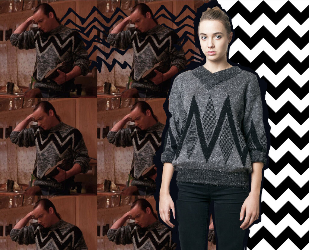 We know that Twin Peaks is the number one storehouse for the ugliest knitted jumpers on earth (or maybe in the whole universe). The show is set in a logging town of the chilly Pacific Northwest, so, it’s no surprise that everyone, from Leo to Laura, is parading in them. But the absolute fashion icon in this respect is Audrey Horne, the seductive vixen of the peaks. She wears them with veeery short and illegally tight pencil skirts, matched with the foulest colour combinations ever, she is absolutely nailing it! You can too with this puffed sleeve sweater!